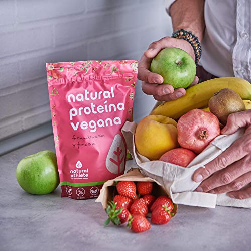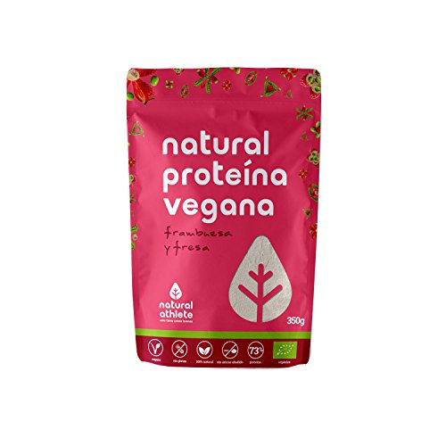 Proteína Vegana BIO Fresa y Frambuesa Natural Athlete 72% Proteína, 100% Natural Sin Azúcar Añadido, Sin Gluten, Sin Lactosa -350g