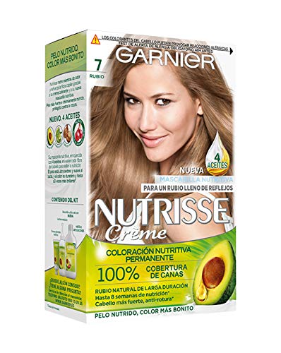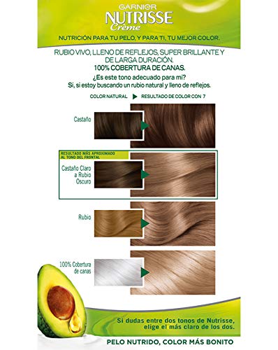 Garnier Nutrisse Creme Coloración Nutritiva Permanente, Tinte 100% Cobertura de Canas con Mascarilla Nutritiva de 4 Aceites - Tono 7 Rubio