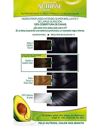 Garnier Nutrisse Creme Coloración Nutritiva Permanente, Tinte 100% Cobertura de Canas con Mascarilla Nutritiva de 4 Aceites - Tono 1 Negro