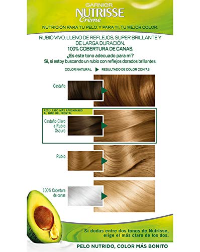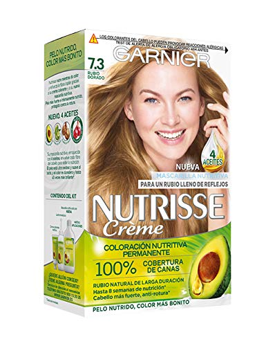 Garnier Nutrisse Creme Coloración Nutritiva Permanente, Tinte 100% Cobertura de Canas con Mascarilla Nutritiva de 4 Aceites - Tono 7.3 Rubio Dorado