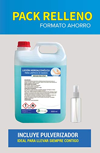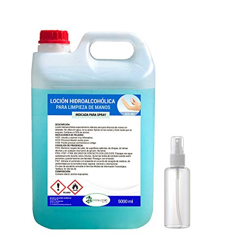Ecosoluciones Químicas ECO- 901 | 5 litros | Loción Hidroalcohólica para manos | 70% alcohol garantizado | Somos fabricantes, Calidad asegurada | INCLUYE PULVERIZADOR