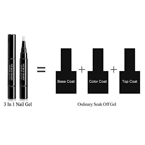 - â DISEĂO 3 EN 1: diseño de apariencia en forma de bolĂgrafo de pintura de pincel de esmalte de uñas en gel, portĂĄtil y fĂĄcil de usar. No necesita capa base ni capa superior. Pincel, cura y listo, hecho en tan solo 5 minutos