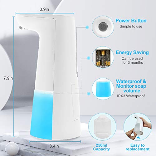 - ?INALÁMBRICO Y DE GRAN CAPACIDAD: Funciona con 3 pilas alcalinas AAA (no se incluyen las pilas) y no requiere de una toma de corriente, por lo que puede ser montado en el En cualquier lugar de la cocina o el baño. Como la capacidad es de 250 ml, puede ser usado unas 800 veces y el próximo recambio durará 3-4 meses.