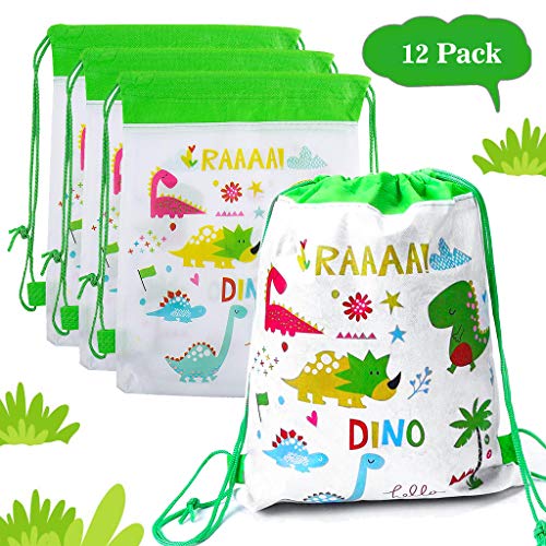 Amycute 12 pcs Mochilas Dinosaurio, Bolsas con Cordón Mochila Party Bolsas Tela no Tejida Escolar Hombro Mochila de Viaje Bolsa de Baile Gimnasio para Adolescentes Niños niñas Cumpleaños
