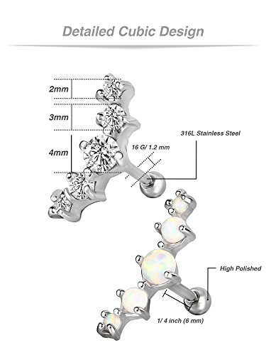 - Cantidad: 2 piezas de perno de cartílago en total, incluyen 1 pieza de tachuelas de cartílago con zirconia blanca cúbica y 1 pieza de perno de cartílago con ópalo blanco, diferentes colores pueden satisfacer sus necesidades