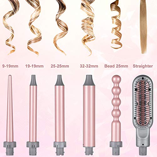 - ?6 EN 1 RIZADOR DE PELO PROFESIONAL?:Este rizador de pelo vien con 6 barriles diferentes.Dos forma de conos:09-18mm,19-25mm,Tres de rectos:19mm,25mm,32mm,y un forma de ondas.Lo que permitirá la máxima versatilidad. Con 6 tamaños diferentes, puedes hacer rizos diferentes.