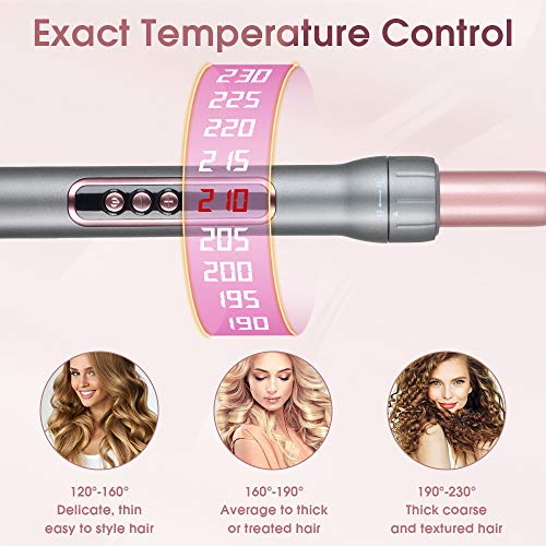 - ?【LCD Pantalla &Temperetura Ajustable】?: LCD Pantalla&Temperetura Ajustable: Este rizador de cabello con tecnología de calor PTC que calienta rápido hasta180 ℃ -230℃ en 40 segundos, revestimiento ceramico bloquea la humedad y mantiene los rizos durante mucho tiempo.Elija una temperatura adecuada por la pantalla para evitar su pelo dañado porque la temperatura demasiada alta.