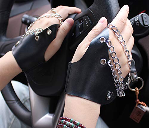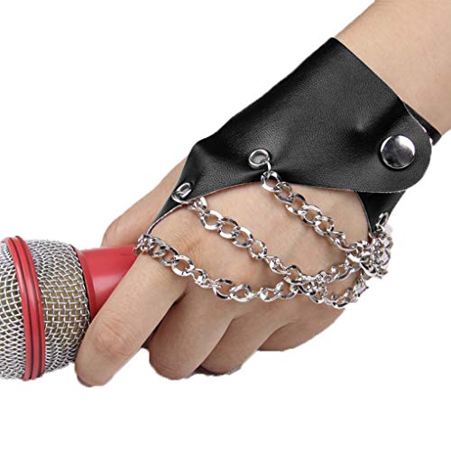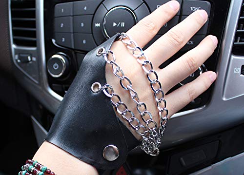 - Guantes sin dedos estilo Punk Rock, decorados con 3 cadenas de metal, super cool y accesorio especial para adultos y adolescentes, un gran regalo de cumpleaños/Halloween/Navidad para tus firends, familias y tú mismo.