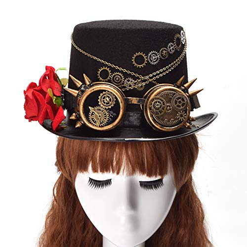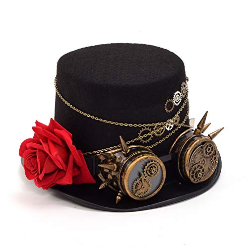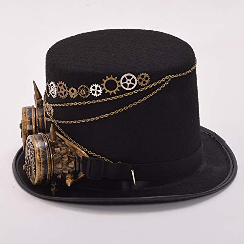 BLESSUME Sombrero Steampunk Gótico Chistera con Gafas Unisex (Colore D, L)