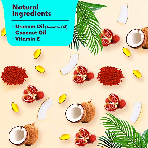 - ? 300 VECES MÁS BETACAROTENO que la zanahoria: El Aceite de Urucum posee una alta concentración de betacaroteno, así como antioxidantes naturales que neutralizan los radicales libres, reduciendo el estrés oxidativo. Protegiendo a la vez a las células del epitelio de la oxidación inducida por la exposición a los rayos solares.