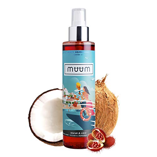 - ☀️ BRONCEADO DORADO: el Aceite Bronceador de Urucum y Coco muum es uno de los más efectivos activadores del bronceado natural. Consiguiendo además un bronceado más rápido, intenso, duradero y garantizando el ansiado tono dorado en el bronceado.