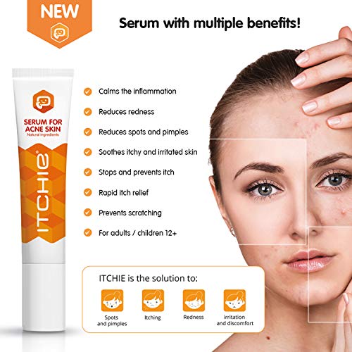 ITCHIE Sérum para la piel con acné - Resultados 100% Comprobados - Tratamiento del Acné Todo en Uno - Calma la Inflamación - Reduce el Enrojecimiento, las Manchas y las Espinillas - Detiene el picor