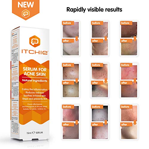 - ◈ PODEROSO SÉRUM PARA TRATAR LA PIEL ACNEICA ¿Quieres disfrutar de una piel sin acné sin tener que gastar dinero en caros tratamientos que no dan los resultados prometidos? ¡Te ofrecemos la nueva solución TODO EN UNO para tratar el acné y TODOS sus síntomas! ¡Con resultados 100% comprobados! ¡ITCHIE ha sido clínicamente probado para reducir el crecimiento de bacterias en sólo 2 horas!