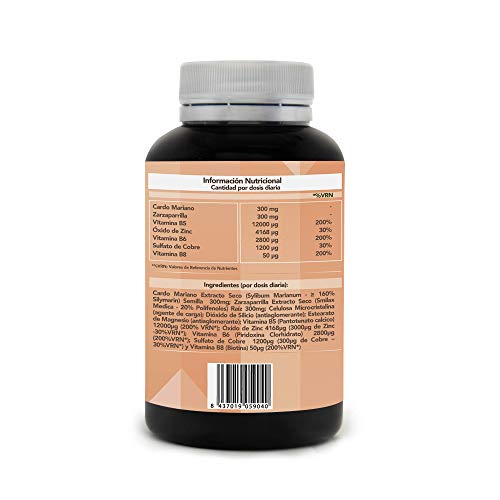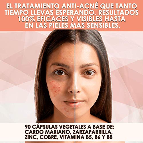 STOP ACNÉ | Elimina el Acné y Previene su Aparición | Tratamiento Eficaz Contra Espinillas y Puntos Negros Grasos | Cardio Mariano + Zarzaparrilla + Zinc + Cobre + Vit. B5, B6, B8 | 90 caps. vegetales