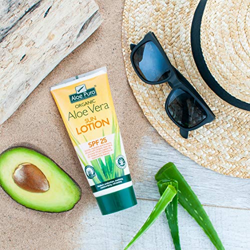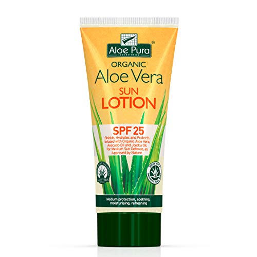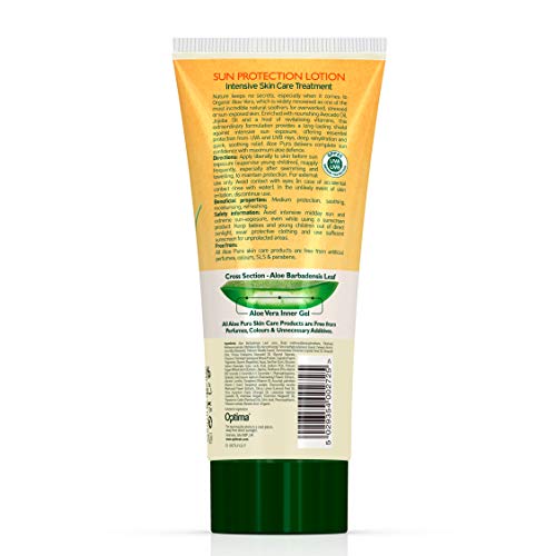 - Un medio Protección solar Loción producida a partir de Bio activo Aloe Vera, jojoba, aguacate, Manzanilla y aceites esenciales orgánicos.