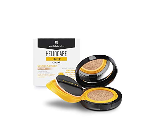 Heliocare 360º Color Cushion Compact SPF 50+ - Fotoprotección Avanzada con Color, para la Reaplicación y el Retoque, Formato Cushion, Ligera, Bronze, 15gr
