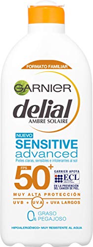 Garnier Delial Sensitive Advanced - Leche Solar para Pieles Claras, Sensibles e Intolerantes al Sol, IP50+ - 300 ml