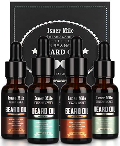 4 Paquetes Aceite Barba, Kit Acondicionador Sin Enjuague, Madera de Cedro, Sándalo, Salvia, Naranja Dulce Para Hombres Bigotes Crecimiento, Suavidad, Hidratación, Regalos Perfectos Para Papá