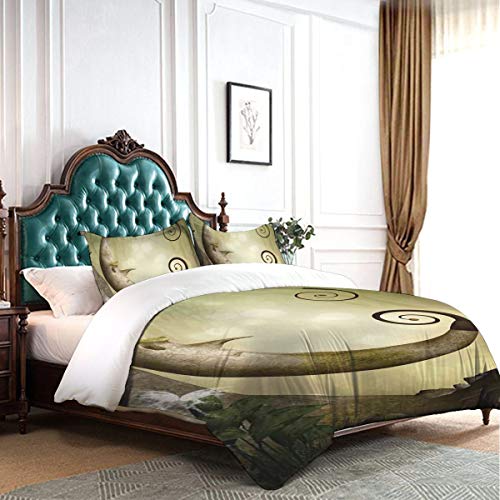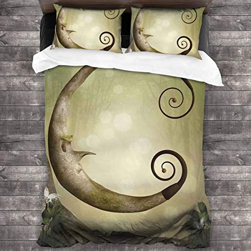WINCAN Forest Secret Swing Árbol Viejo Lámparas en Forma de Media Luna rizadas Mariposas Fundas Edredon 140x200cm con 2 Fundas De Almohada 50x80cm para La Decoración del Hotel En El Hogar Dormitorio