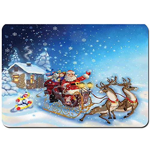 YANAIX Alfombra de Baño,Santa en Trineo con Renos y Juguetes en Snowy North Pole Tale Fantasy Image,Súper Suave Multiuso Lavable a Máquina75x45cm