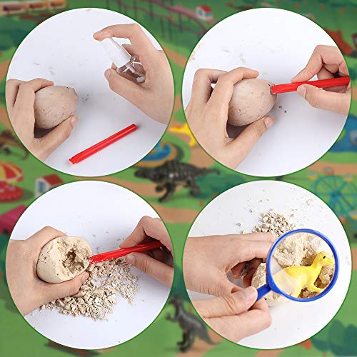 Anpro 12 Huevos de Dinosaurio,Kit de Excavación,Incluye 12 Figuras de Dinosaurios de Juguete, Regalo Infantil para Aprender Ciencias de la Arqueología