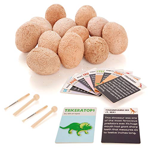 - Contenido - Incluye 12 huevos de dinosaurio (cada uno con una figura de dinosaurio de juguete única), 12 tarjetas de información sobre los dinosaurios, 2 tijeras de madera, 2 pinceles y una hoja de instrucciones.