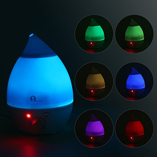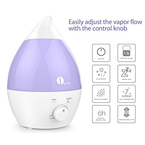 1 BY ONE 1.3 litros Humidificador ultrasónico, No Ruido con Luces LED de 7 Colores con la función Apagado automático para su hogar y Oficina