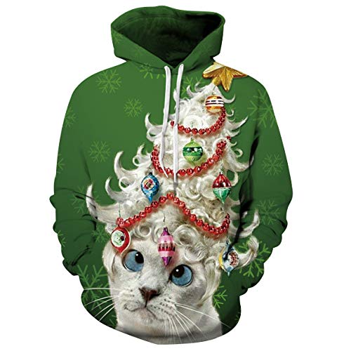 Goodstoworld Jersey Navidad Hombre Mujer Christmas Jumper 3D Gato Navideño Ropa Jolly Divertida Elfo Impreso Traje de Xmas L