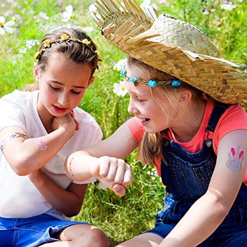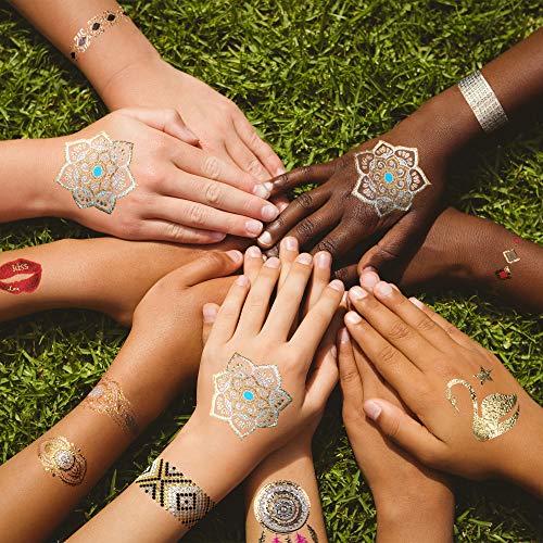 - CADA PACK CONTIENE 5 TARJETAS llenas de coloridos tatuajes metálicos que son ideales para las manos, brazos, cuellos y pies. El mejor recuerdo para las fiestas de cumpleaños con tus amigas!