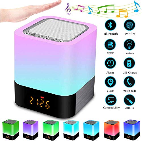 Luz Nocturna Altavoz Bluetooth, Frontoppy Lámpara Táctil Que Cambia de Color, Luz de Noche RGB Regulable, Reloj Despertador Digital, Regalo para Adolescentes