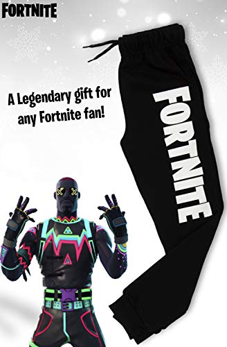 Fortnite Pantalón Niño, Pantalón de Deporte Niño de Felpa Gris Claro o Negro, Pantalón Largo Deportivo, Pantalón de Felpa, Regalo Niño (9/10 años, Negro)