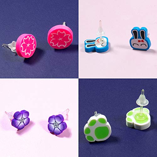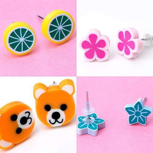 Pendientes para niñas, Comius 100 Pares Hecho a mano Hipoalergénico Color mezclado Cerámica suave Animales Pendientes de botón para Mujeres (Aguja de acero)