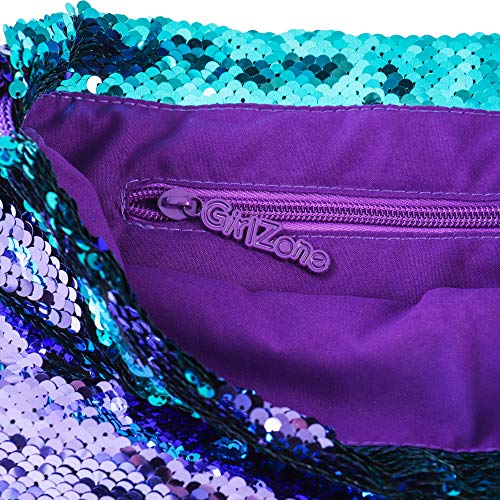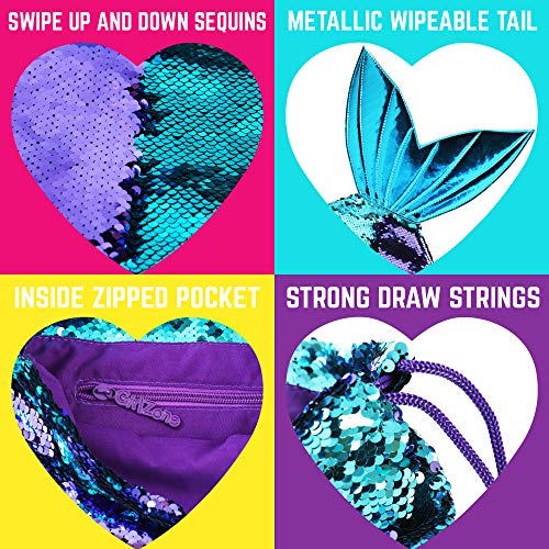 Regalos para Niñas -Mochila Infantil para Niñas Cola de Sirena de GirlZone, Bolsa con Lentejuelas Reversibles, Cierre de Cordones, Forro de Algodón y Bolsillo Interior