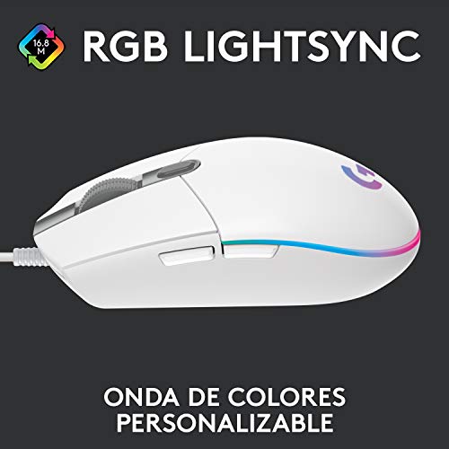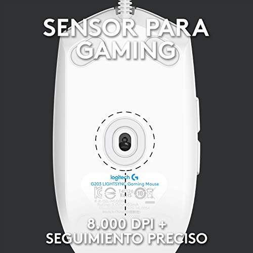 Logitech G203 LIGHTSYNC Ratón con iluminación RGB personalizable para gaming, 6 botones programables, sensor para gaming, seguimiento de hasta 8.000 dpi, peso ligero,G203 2ª Gen.,Blanco