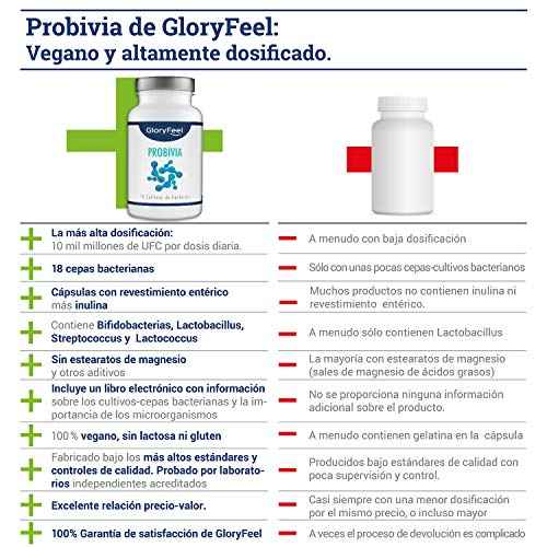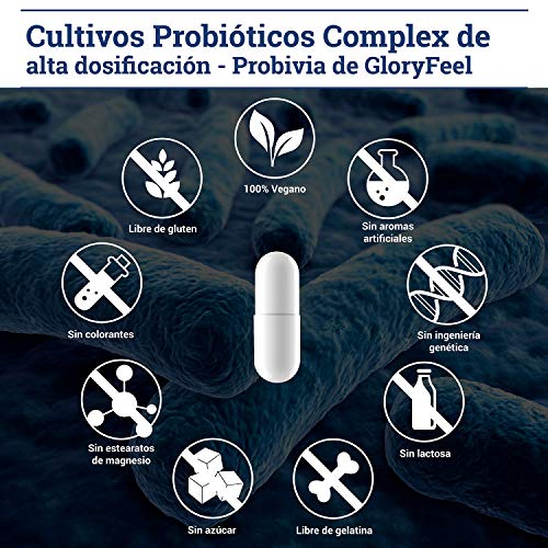 - ✅ 200 CÁPSULAS - MEJOR RELACIÓN PRECIO VALOR - 200 cápsulas con revestimiento entérico y veganas. Contienen lactobacillus gasseri, acidophilus y bifidobacterium para la flora intestinal. 10 mil millones de UFC por día. ? INCLUYE E-BOOK. Solicitelo a support@gloryfeel.es