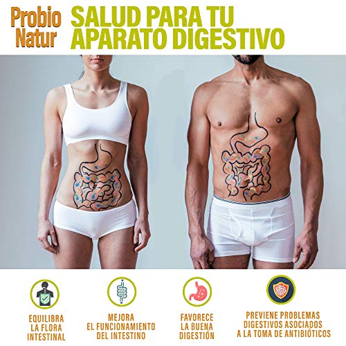 - FLORA INTESTINAL SANA - ProbioNatur mantiene tu flora intestinal estable y sana, aportando equilibrio a la microflora del sistema gastrointestinal inhibiendo el crecimiento de bacterias dañinas.