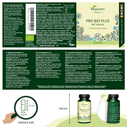 BIO Probióticos Veganos Vegavero® | Con Inulina BIO (Prebiótico) | Testado en Laboratorio | Sin Aditivos | 90 Cápsulas | Bifidobacterium Lactis + Longum + Lactobacillus Plantarum + Rhamnosus