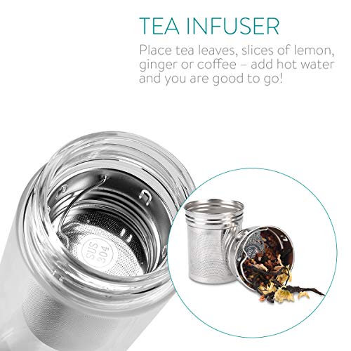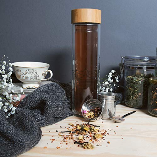 - PARA EL DĂA A DĂA: Con esta botella para el tĂ© disfrutarĂĄs de tu bebida favorita en casa, en el trabajo, en la universidad, en el gimnasio o de excursiĂłn. Recomendamos calentar un poco la botella antes de llenarla con lĂquidos calientes.