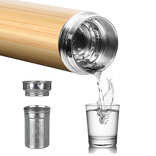- †Procesamiento de alta calidad. Super elegante Gran regalo †FĂĄcil de limpiar y llevar. Diseño de bambĂș. Ahora la tapa es de acero inoxidable y no se romperĂĄ.