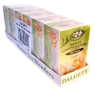 Instant Dalgety Ginseng y jengibre con miel té - té del Caribe Real. Conocido para estimular su sistema inmune. Paquete de 6 - Total 120 acidez. Small fuerza de té. 100% té de hierbas naturales. Producto de Reino Unido