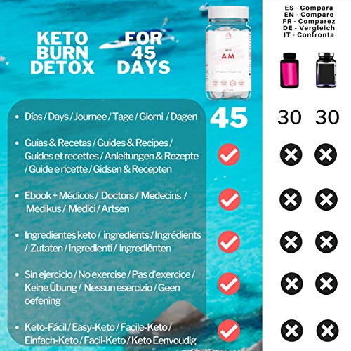 - ☀️ INICIA, MEJORA Y ACELERA KETO POR 45 DIAS (A.M.) - Ya sea que ya estés en una dieta cetogénica, recién comenzando o hayas recaído con carbohidratos, el Keto AM puede ayudarte a aumentar tus niveles de keto para aumentar la actividad quema grasa mientras te ayuda a controlar el apetito, proporcionando un suplemento keto ideal para mujeres y hombres. Kit Completo de Cápsulas + Libro de Recetas + Guías Keto + Acceso Expertos