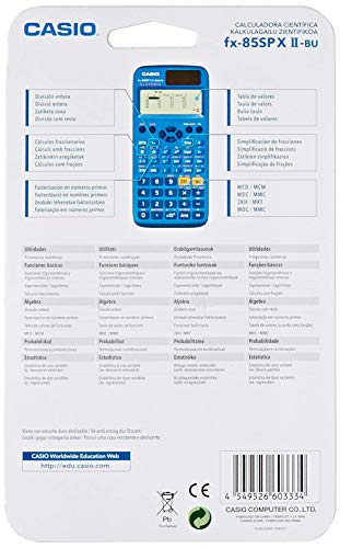 Casio FX-85SP X II - Calculadora Científica, Recomendada para el Curriculum Español y Portugués, 293 funciones, solar, Azul