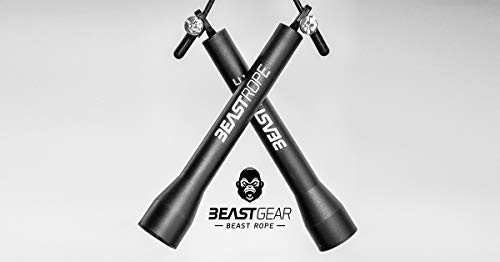 Cuerda para saltar de alta velocidad de Beast Gear. Comba de CrossFit, Boxeo, MMA. Longitud Ajustable y Rodamientos Ligeros, Ideal para Saltos Dobles. Garantía de por vida