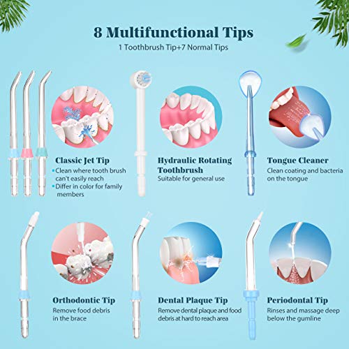 - [8 puntas multifuncionales] ATMOKO Hidropulsor con diferentes boquillas para satisfacer las diferentes necesidades de sus dientes, esta combinación ayuda a limpiar los dientes de forma saludable y eficaz.