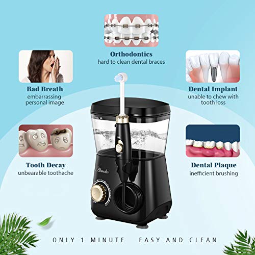 - [Depósito de agua de gran volumen de 600 ml] Este hidropulsor dental con un gran depósito de agua de 600 ml, proporciona hasta 180 segundos de hilo dental ininterrumpido, garantiza una mejor higiene bucal y cuida sus dientes.