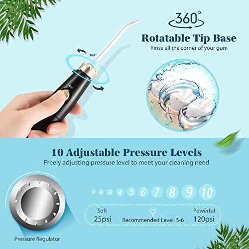 - [25-120 PSI Agua Pulsada Potente] ATMOKO Hidropulsor dental profesional utiliza una presión de agua más amplia 25-120 PSI con un total de 10 ajustes de presión de agua, por lo que puede elegir la presión de agua más adecuada para sus dientes y encías.