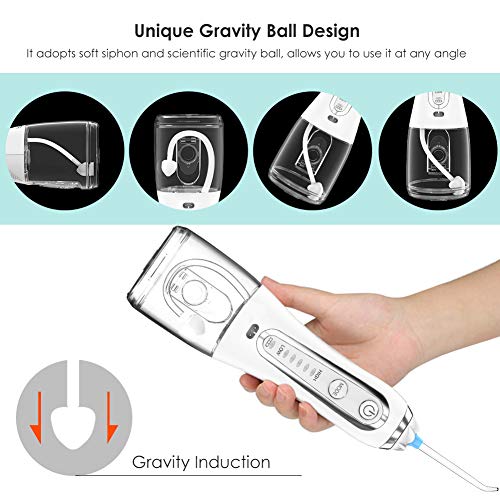 - 【Gran Capacidad de 320ML】A diferencia del irrigador dental portátil tradicional, La Capacidad de depósito se actualiza de 300ml a 320 ml, sin necesidad de agregar agua repetidamente. Solo presione el botón, el tanque de agua se puede desarmar para limpiar completamente. El manguera está equipado con una esfera de gravedad para usarlo en cualquier ángulo.