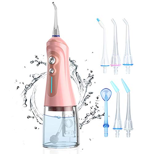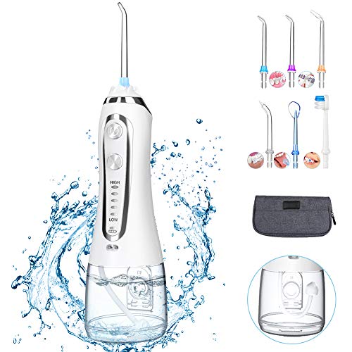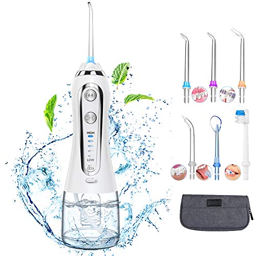 Irrigador Bucal Portátil con 6 Boquillas, Multifuncional 300ml Irrigador Dental, Profesional IPX7 Impermeable Limpieza de Dientes de Ortodoncia y Dientes de Implante, Lavado Pulsado de Dientes