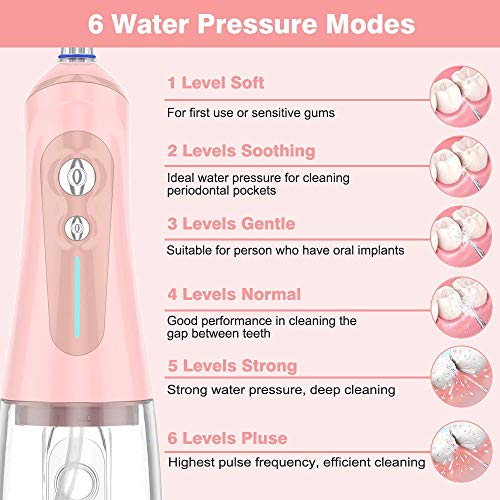 - ? 5 Modos de Limpieza ?: Este irrigador dental tiene 5 niveles de presión ajustables, presión del agua: 30 a 110 psi. Otros productos tienen solo 3 modos, ofrecemos 5 modos para elegir, que pueden cuidar su diente con cuidado. Muy recomendado por dentistas y ortodoncistas, adecuado para todo tipo de personas.