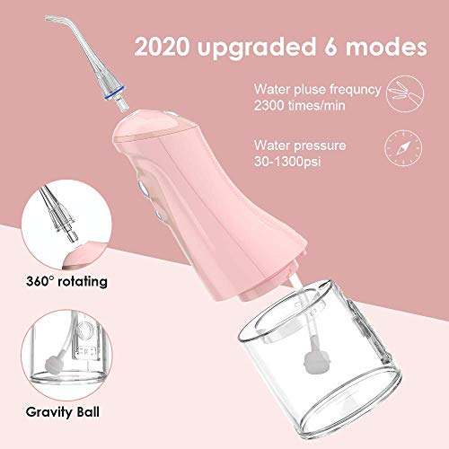 Irrigador Bucal Portátil Profesional con 6 Boquillas 6 Modos, Recargable Irrigadores Dentales 320ML IPX7 para Placa dental,Dientes de Implante,Dientes de Ortodoncia, Limpieza en Casa/Viaje